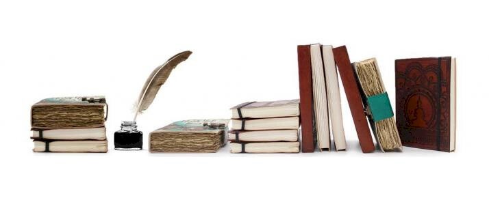 Prachtig notitieboekje van 22 x 12 cm handgemaakt van Indiaas plantaardig gelooid leer en gerecycled papier.