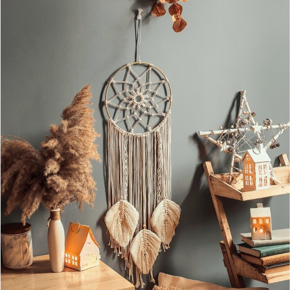Prachtige macramé wandhanger in een boho stijl die in veel interieurs past
