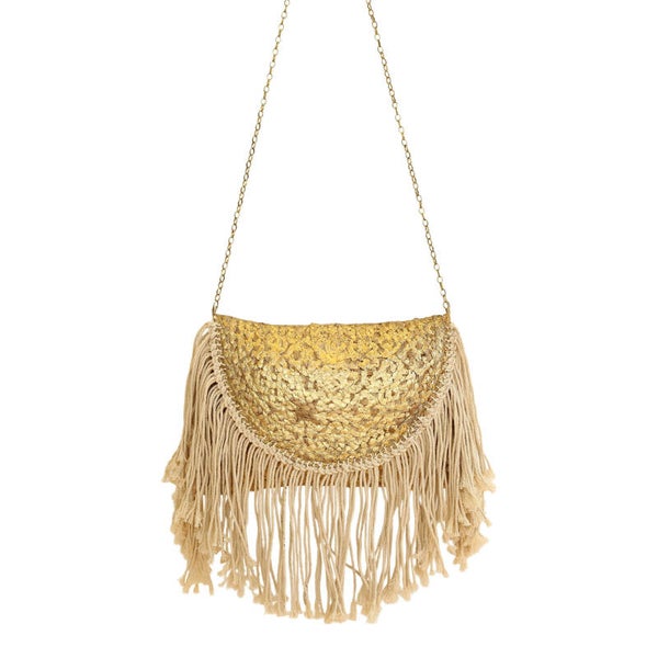 Jute Boho Clutch Franjes Goud Cala Cavallet 3