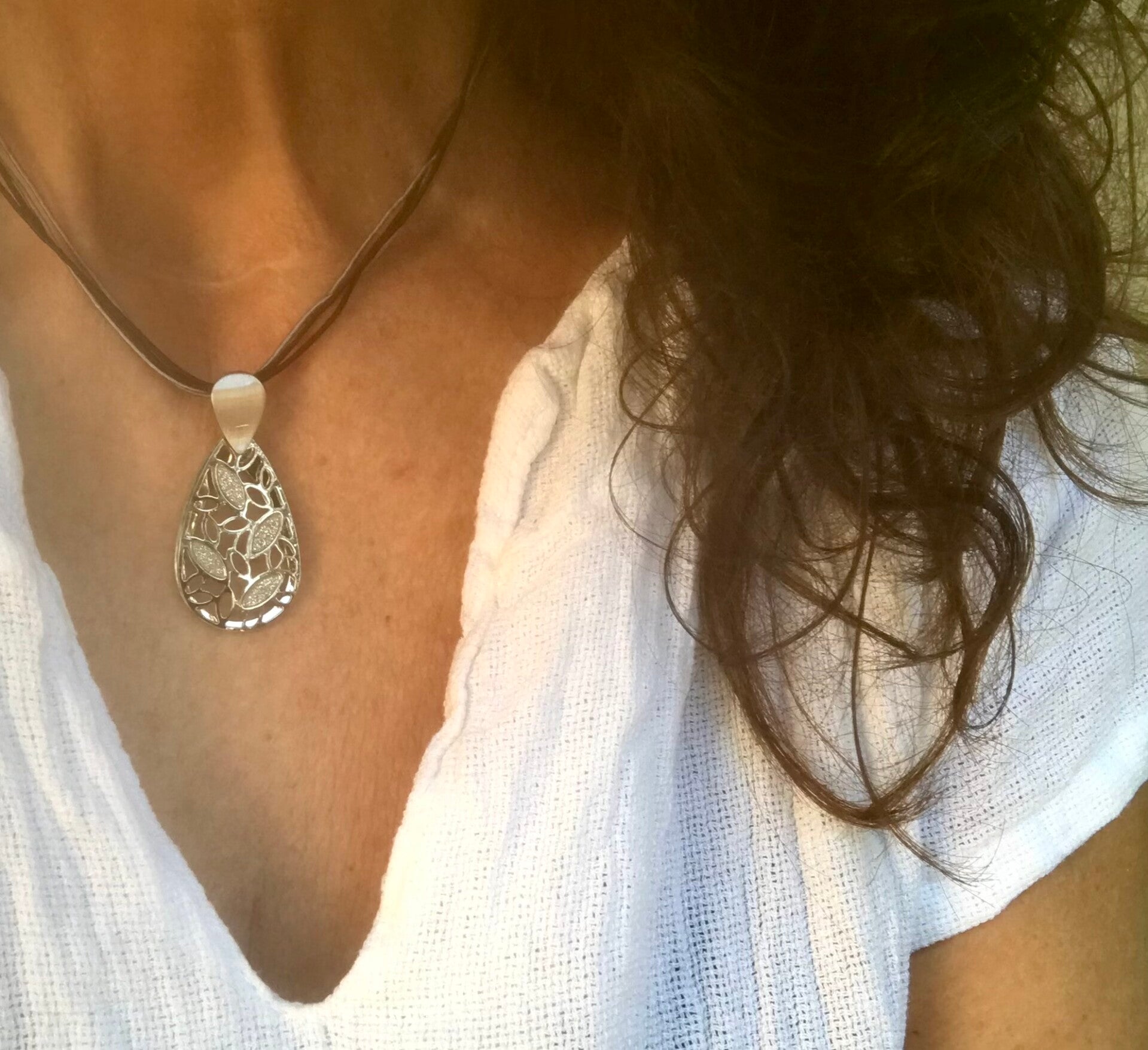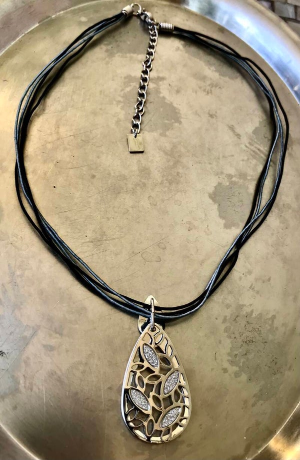 Zilverkleurig hangertje aan vier dunne koordjes