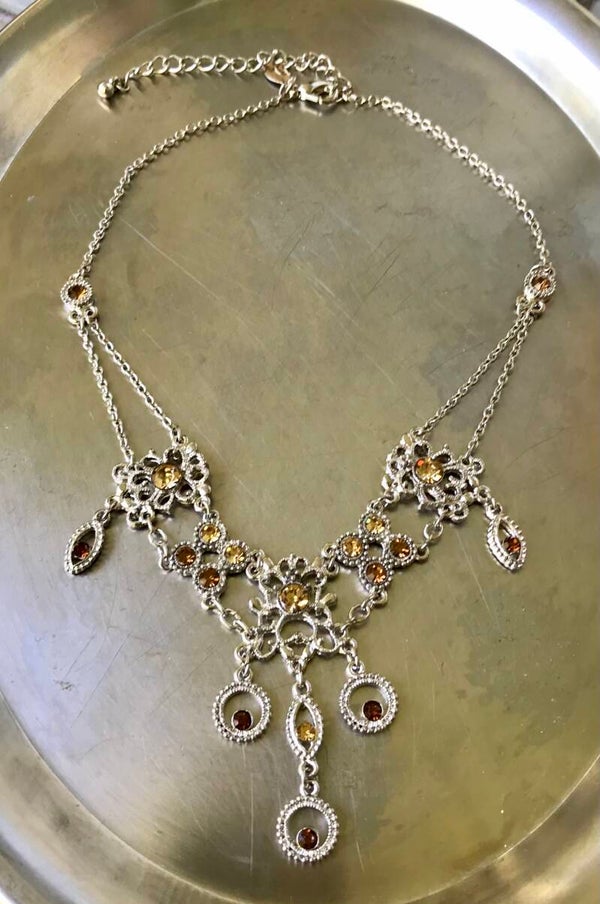 Sierlijk kettinkje in antiek zilver met bruine strass steentjes