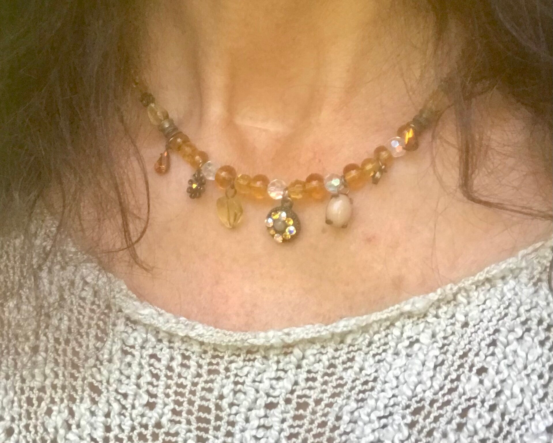 Lief kort retro/vintage kralen kettinkje met kraaltjes en bloemetjes in mooie bruin en aarde tinten
