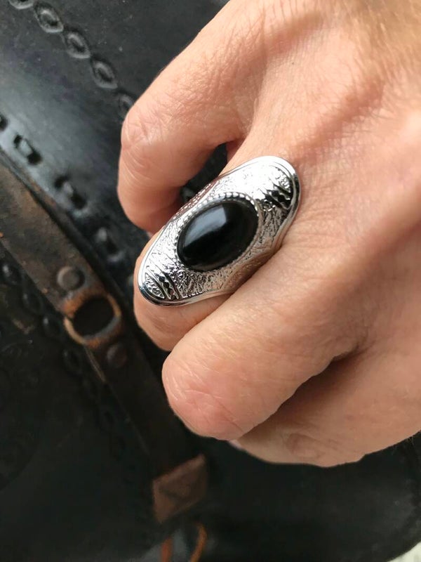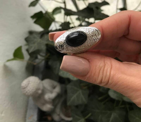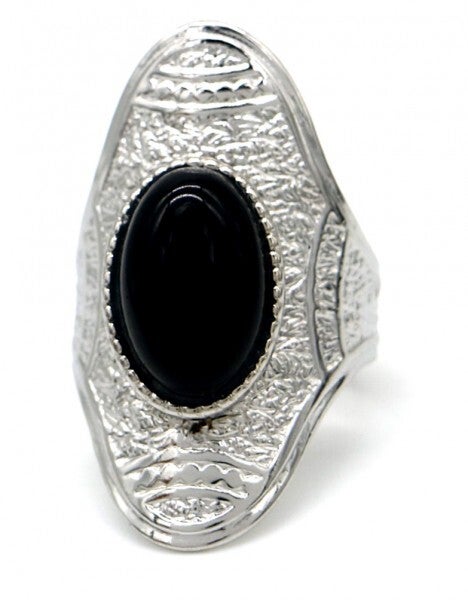 Verstelbare zilverkleurige stalen ring met zwarte steen